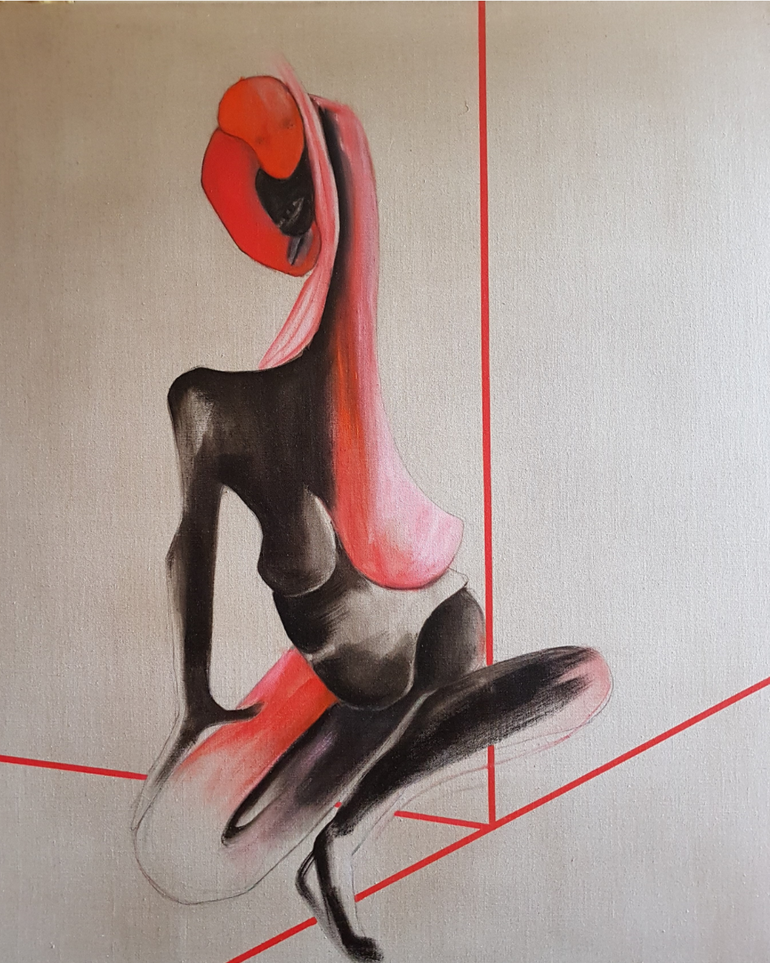 Des corps simples, des visages tout juste esquissés, un geste qui nous relie au corps qui peint. Oui, la peinture de Gifty est habitée et elle nous regarde.