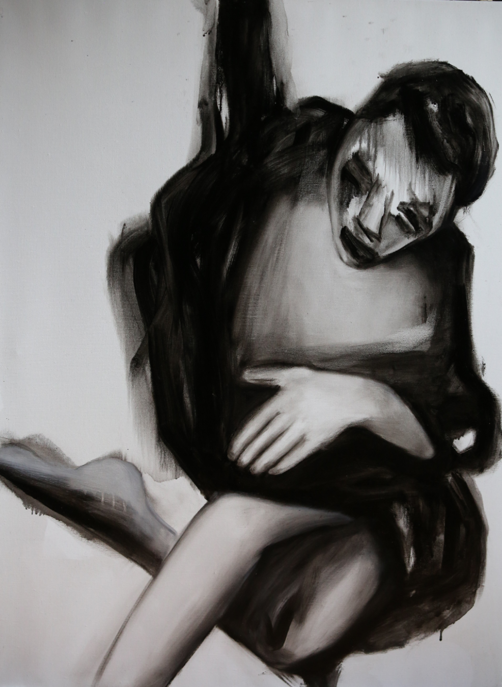 Elle peint des corps sans chair, des visages déformés, des mères et des enfants sans regard mais aussi des couples qui dansent enlacés. Le manque, la douleur, l’absence s’expriment dans la violence du trait, dans les noirs profonds, la vitalité dans le mouvement et l’intensité des couleurs. La vie l’emporte même si rôdent la mort et les fantômes d’un passé très présent.