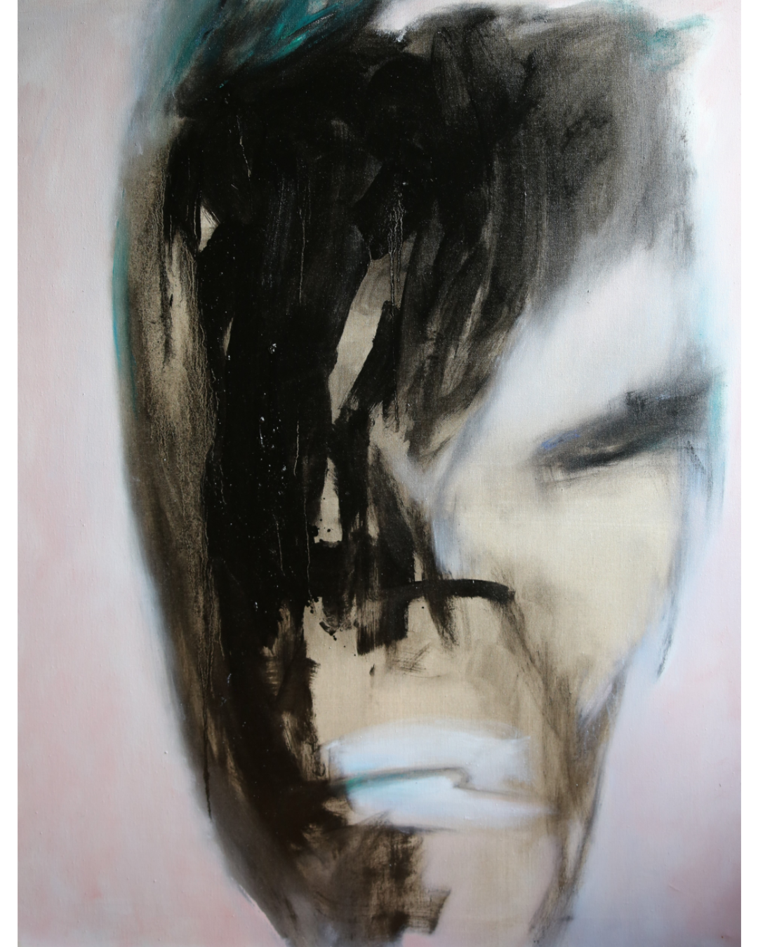 Striving beyond that of a simple notion, the complexity of Gifty’s work is what creates meaning. Her subject is at the center of all her questions. Harsh, frontal compositions are absent of decor, displaying the human in all his mystery and in all his truth. The visual aspect is refined without added details. Smooth streaks of paint are distributed in bold layers. The simple components of such an atmosphere could perhaps be considered an artist’s caution. However, what seems like a weightless surface is Gifty carefully and cleverly allowing one to acknowledge her work. Choice of color confirms her modesty, particularly in works where only shades of black and gray are present. In the end, her style lends meaning with a certain grace and tact which cannot be defined. It is simply felt.