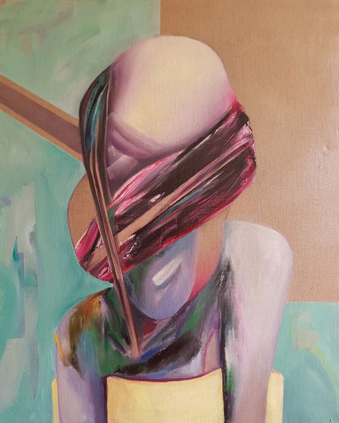 Des corps simples, des visages tout juste esquissés, un geste qui nous relie au corps qui peint. Oui, la peinture de Gifty est habitée et elle nous regarde.