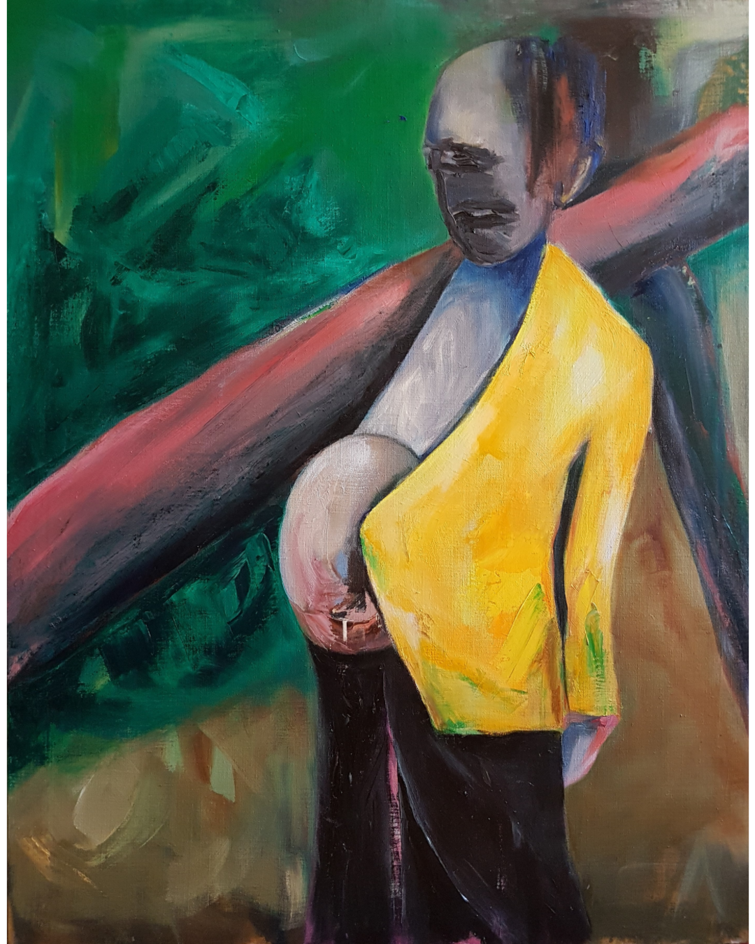 Elle peint des corps sans chair, des visages déformés, des mères et des enfants sans regard mais aussi des couples qui dansent enlacés. Le manque, la douleur, l’absence s’expriment dans la violence du trait, dans les noirs profonds, la vitalité dans le mouvement et l’intensité des couleurs. La vie l’emporte même si rôdent la mort et les fantômes d’un passé très présent.