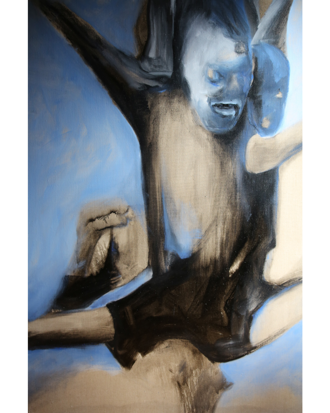 Des corps simples, des visages tout juste esquissés, un geste qui nous relie au corps qui peint. Oui, la peinture de Gifty est habitée et elle nous regarde.